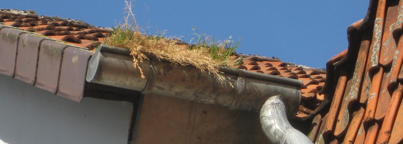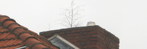 Schnell wachsende Birken auf Dächern oder Mauervorsprüngen können mit ihren Wurzeln das Gefüge von Mauerwerk und Mörtel zerstören. Gefunden vom Gutachter bei einer Wertermittlung für ein Einfamilienhaus in Neustadt am Rübenberge.